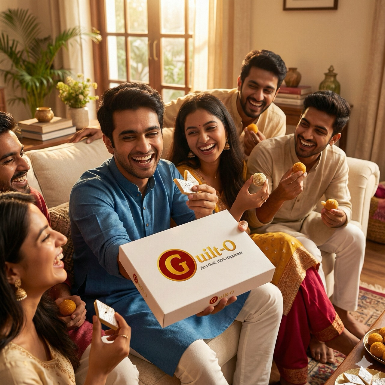 “At Guilt-0, we craft Indian sweets that bring you the joy of indulgence — without the worry. 100% authentic taste, 0% guilt